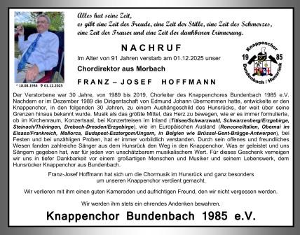 Der Knappenchor trauert um seinen ehemaligen Chorleiter Franz-Josef Hoffmann aus Morbach